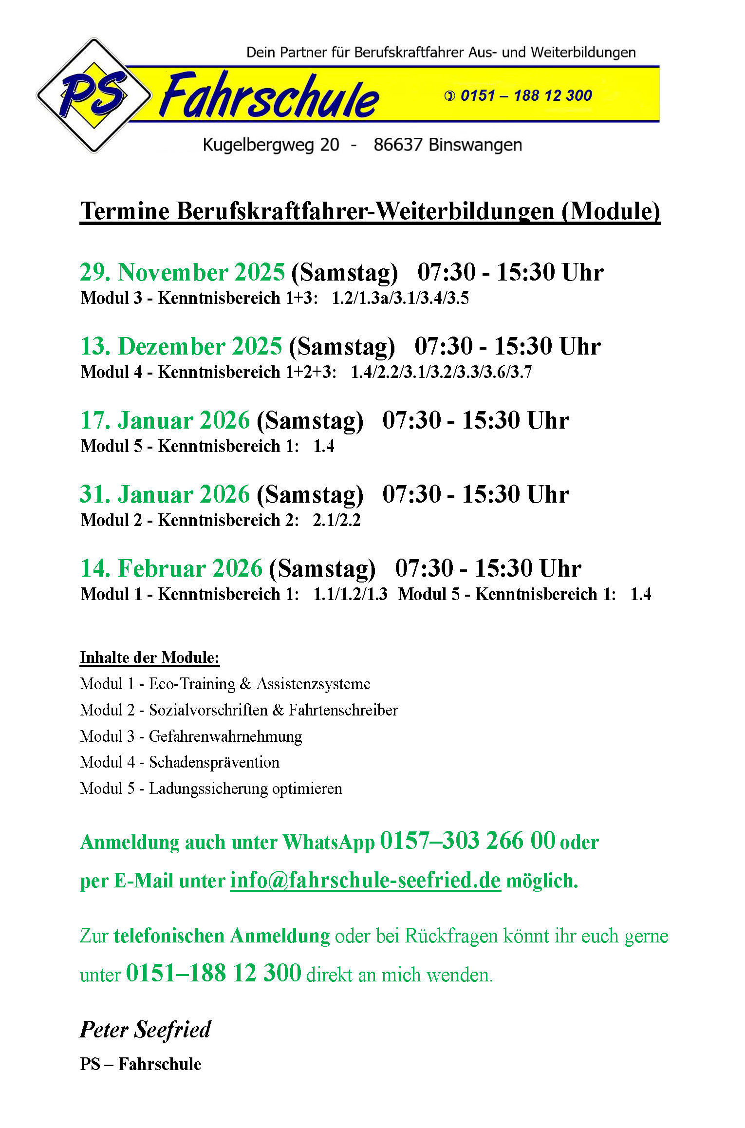 Die PS – Fahrschule in Binswangen wurde im Jahr 2006 von Inhaber Peter Seefried gegründet und konnte bereits ihr 10-jähriges Jubiläum feiern.